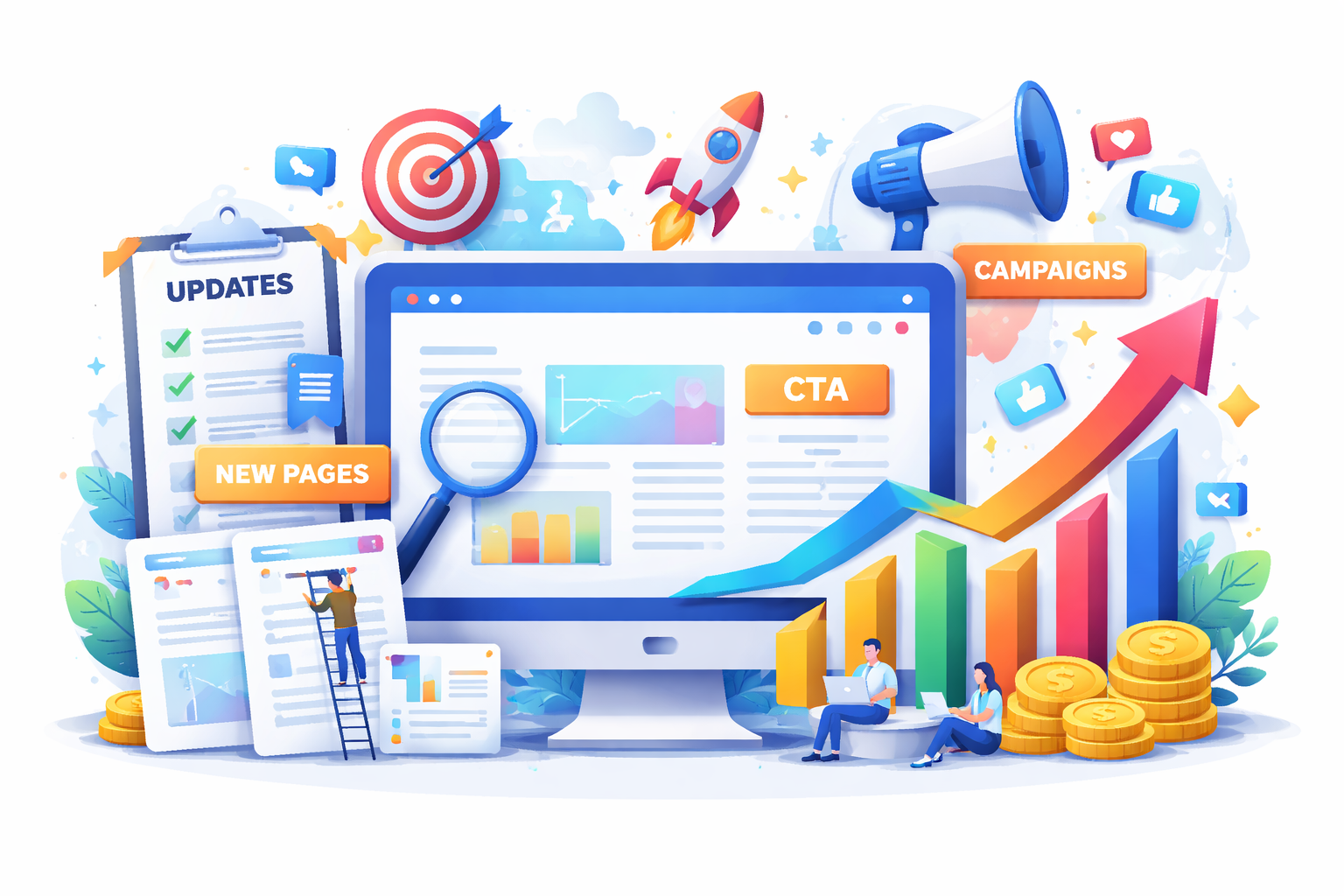 When existing pages are updated, search engines recognize that the information is current and valuable. When new pages are added, the website begins appearing for a broader set of search queries. When CTAs encourage visitors to interact with the content, engagement metrics improve. When campaigns promote the content, new audiences arrive and share it with others.